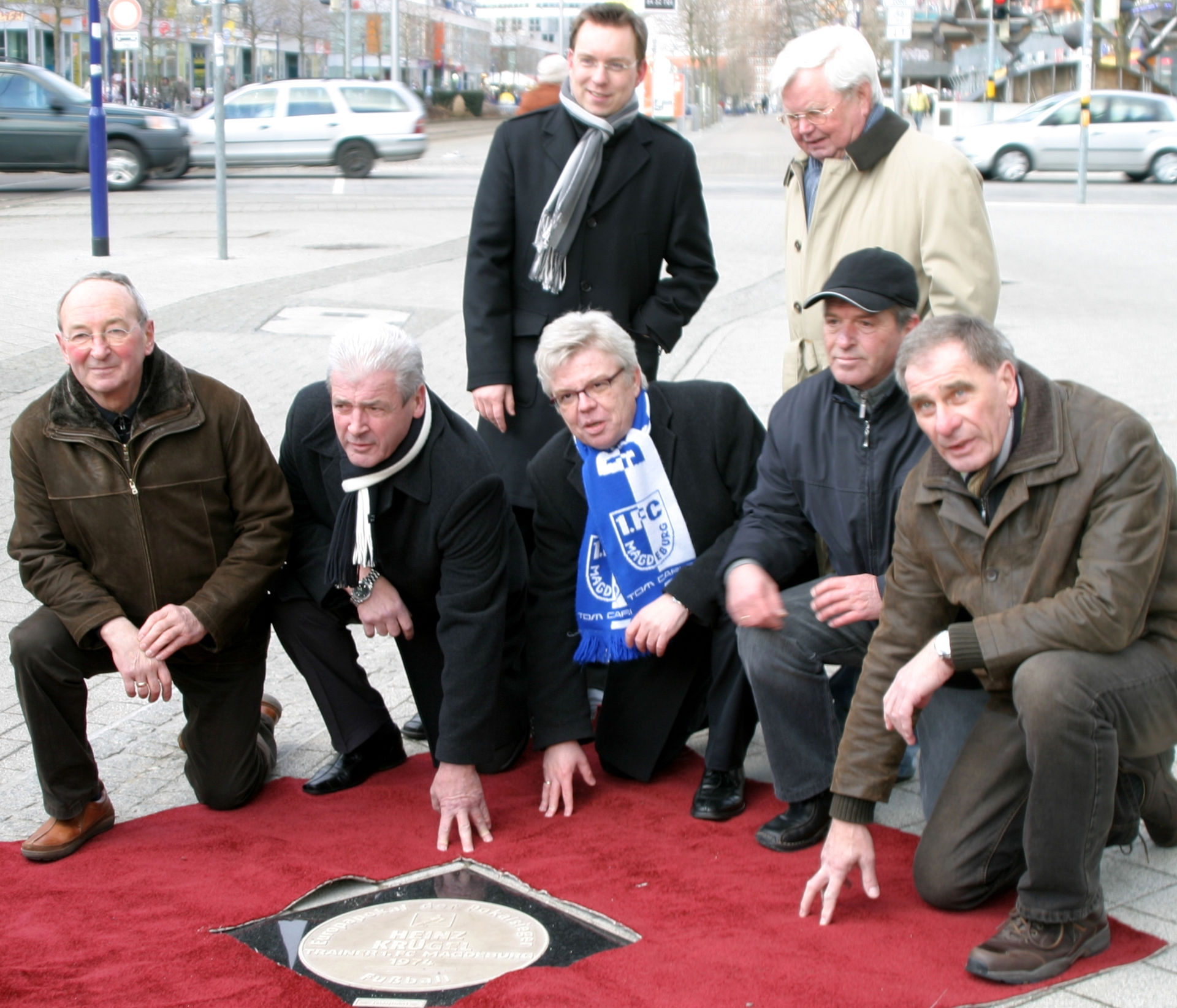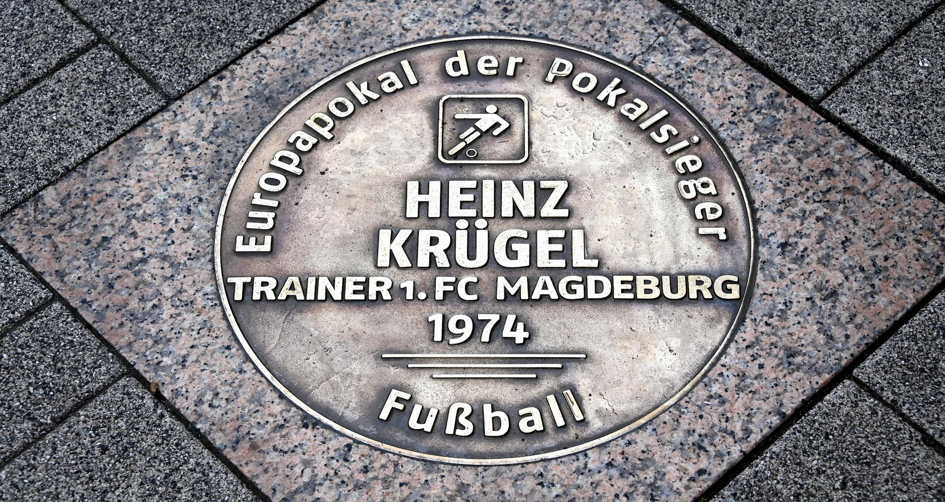 Ausnahmslos alle Spieler kamen aus Magdeburg und der Region. Und kein Name ist so eng mit den größten Erfolgen des 1. FC Magdeburg verbunden wie Heinz Krügel. Nach seinem Tod benannte der Magdeburger Stadtrat den Platz vor der MDCC-Arena nach ihm. 2014 wurde dort auf Initiative des FCM-FanRats ein Denkmal des Meistertrainers errichtet.
